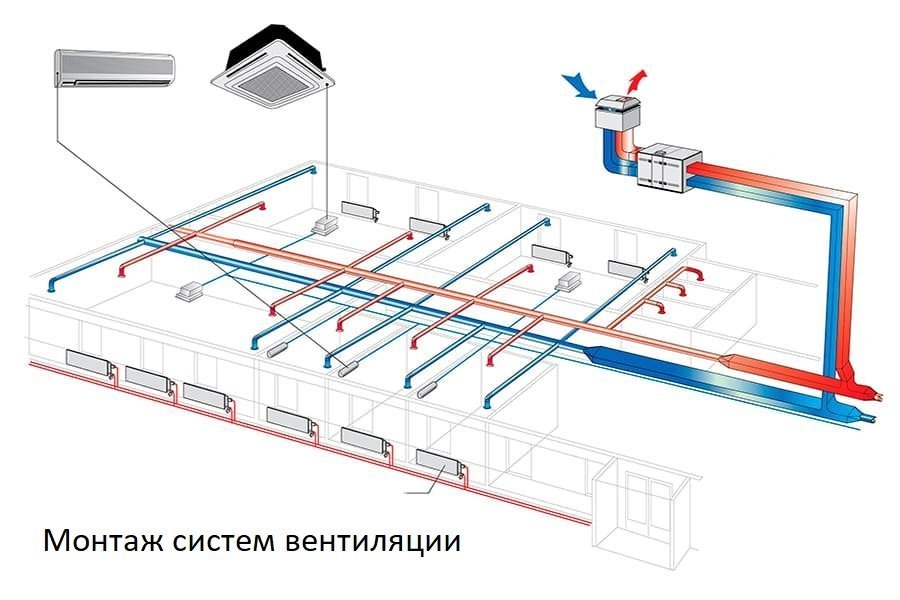 - Установка оборудования: Монтаж вентиляторов, клапанов, фильтров и других компонентов системы.
